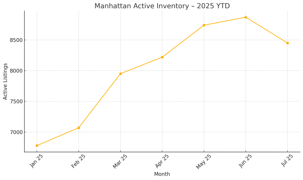 July 2025 brings steady momentum to Manhattan’s housing market, with subtle shifts beneath the surface. Buyers are quicker on renovated listings, sellers test higher prices, and rental inventory is quietly rising. Key metrics—inventory, absorption, pricing—reveal where the market may be headed. This report unpacks July’s trends to show what’s moving, where leverage is shifting, and how to navigate the coming months. Whether you’re eyeing a co-op uptown or a condo downtown, these insights help you move with confidence.